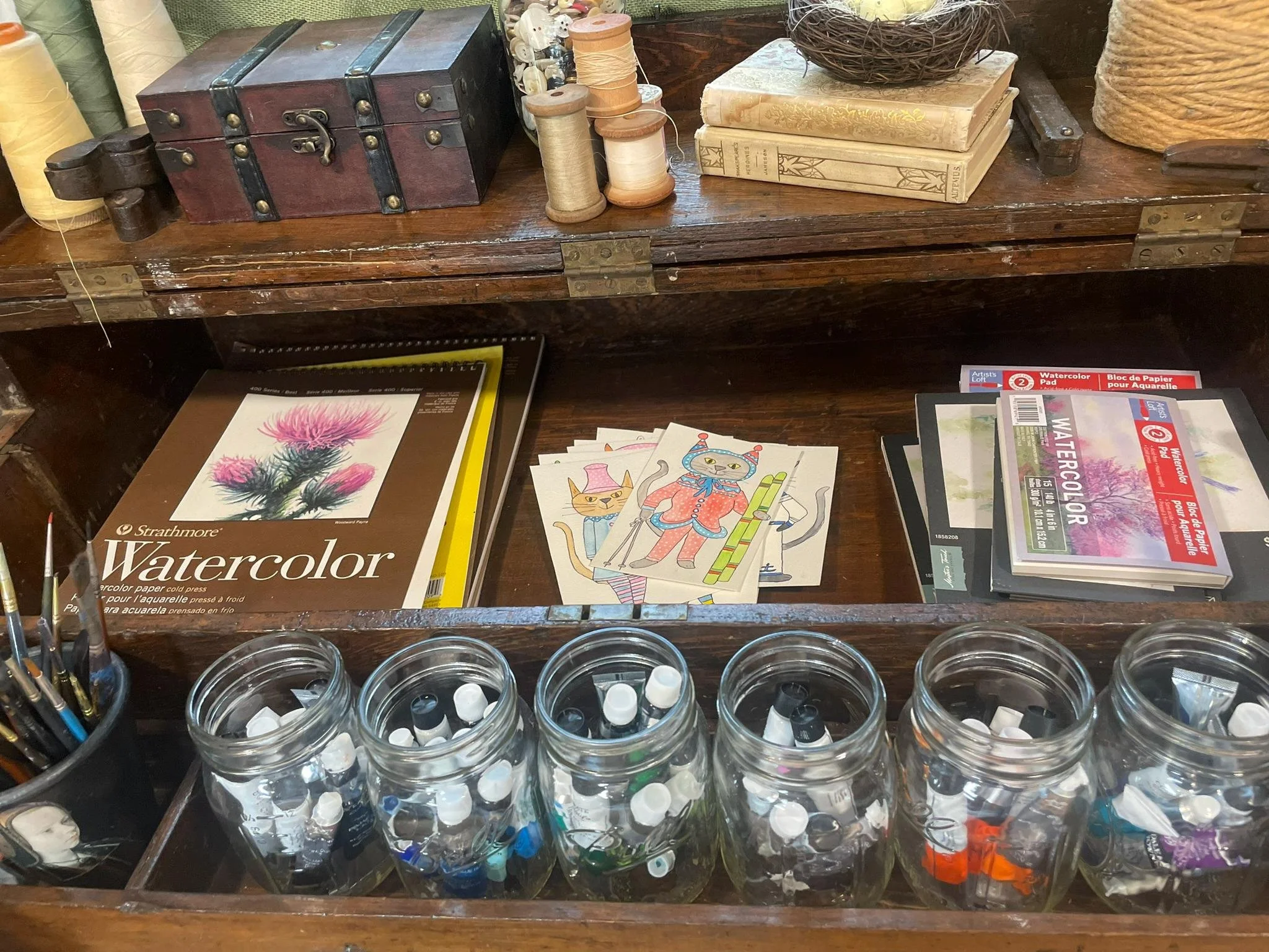 While homeschooling my two sons, I began exploring my own creative voice—starting with clay pots featuring famous portraits on them, which I sold to the Philadelphia Art Museum, Colonial Williamsburg, and other museums and gift shops around the country. That work evolved into designing trays and plates, and eventually led me to watercolor illustration.